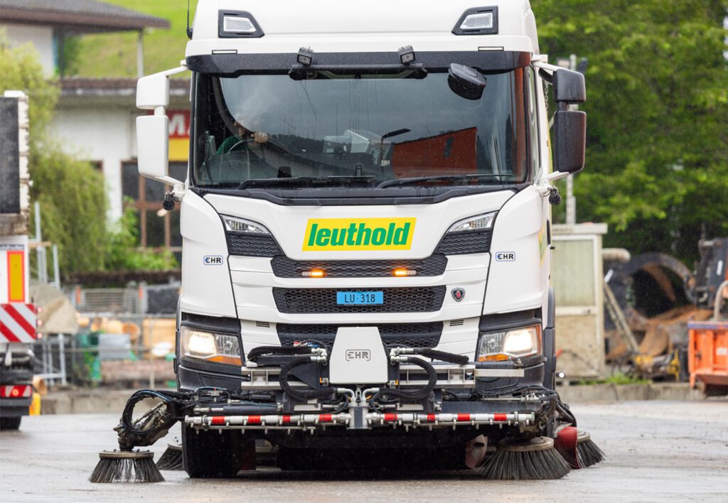 Die eingesetzte Strassenkehrmaschine verfügt über einen grosszügigen 5’400-Liter-Wassertank sowie über eine Hochdruckanlage mit 200 bar. Der fest installierte Frontwaschbalken gewährleistet eine gleichmässige und effektive Reinigung.