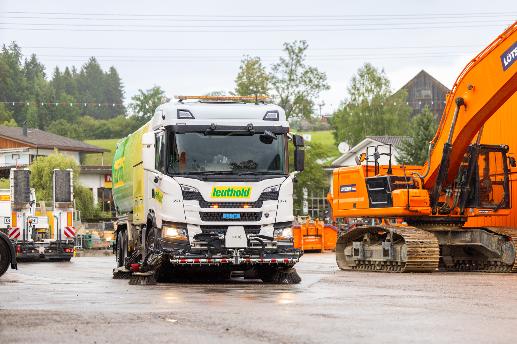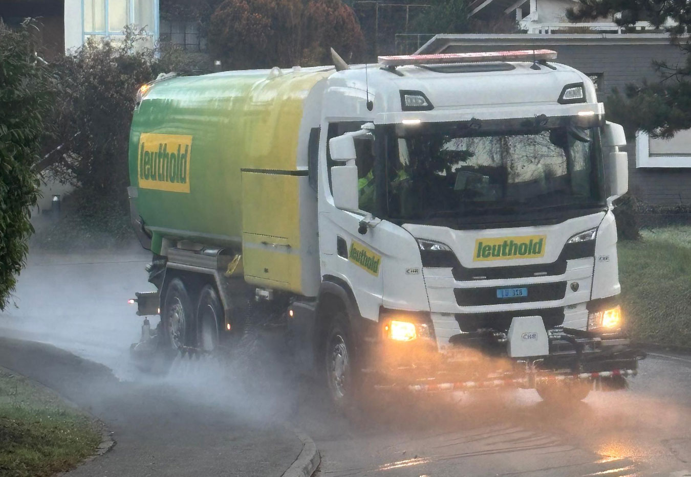 Die eingesetzte Strassenkehrmaschine verfügt über einen grosszügigen 5’400-Liter-Wassertank sowie über eine Hochdruckanlage mit 200 bar. Der fest installierte Frontwaschbalken gewährleistet eine gleichmässige und effektive Reinigung.